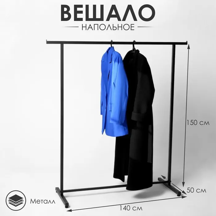 Вешало напольное без выноса 120×50×150 см, цвет чёрный