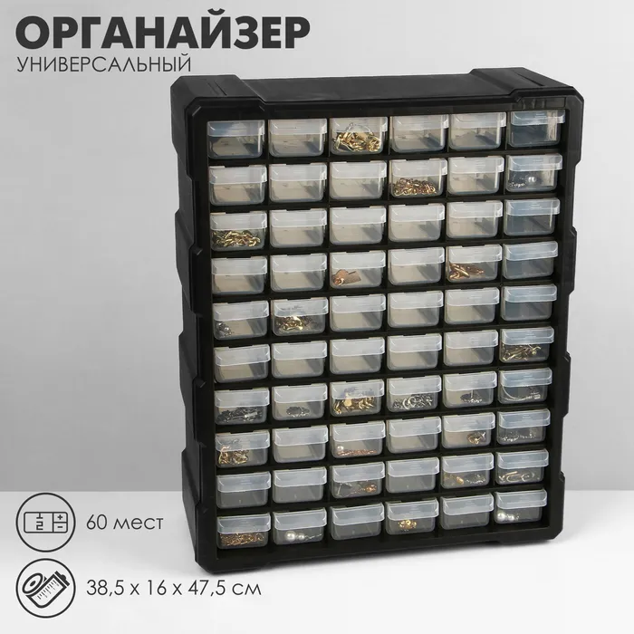Органайзер универсальный «Ящик» 60 мест, пластик, 38.5×16×47.5 см, черный