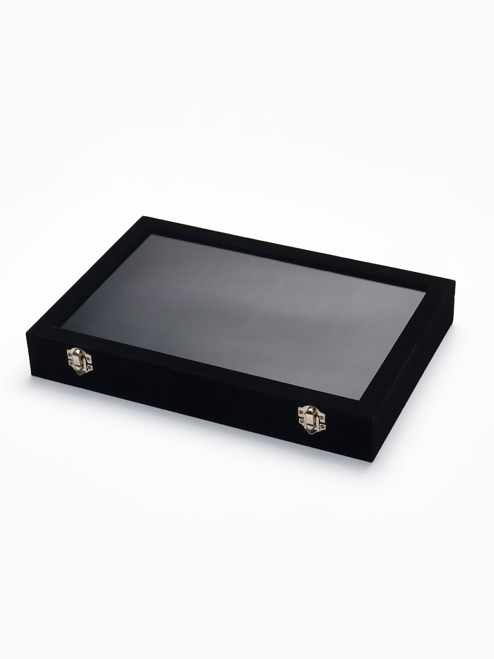 Шкатулка 12 ячеек, стеклянная крышка, 35×24×4.5 см, чёрная