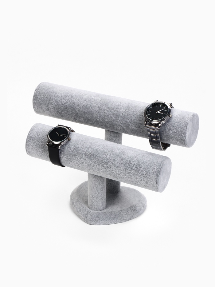 Подставка для часов, браслетов , цепочек «Мини», флок, 16×6×14см, d=5см, цвет серый