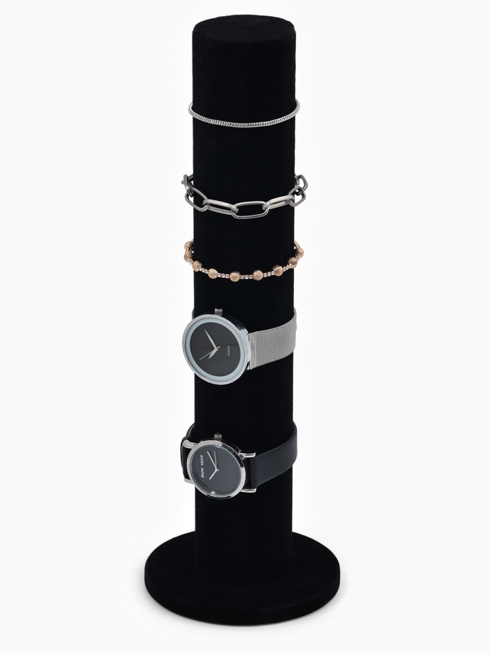 Подставка для часов, браслетов, цепочек «Тубус», флок, 10.5×10.5×31 см, d=5 см, цвет чёрный