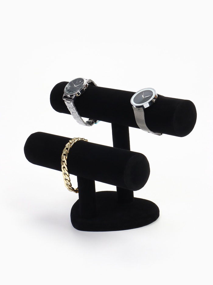 Подставка для часов, браслетов QF, двухуровневая, флок, сердце, 26×11×18 см,d=5 см, цвет чёрный