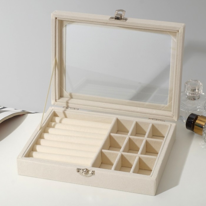Шкатулка, 7 полос, 9 ячеек, 20×15×4.5, бежевая
