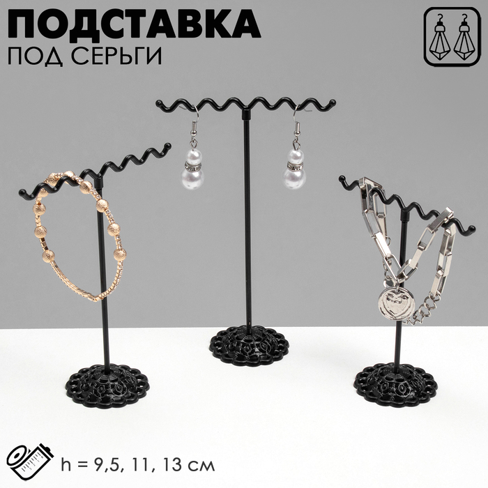 Подставка под серьги QF «Волны», набор 3 шт., h=9,5, 11, 13 см, цвет чёрный