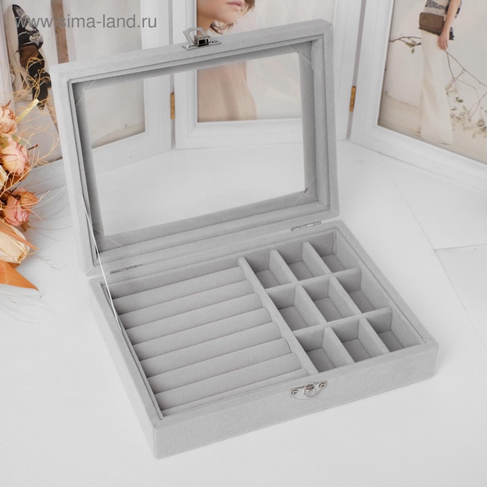 Шкатулка, 7 полос, 9 ячеек, 20×15×4.5, серая