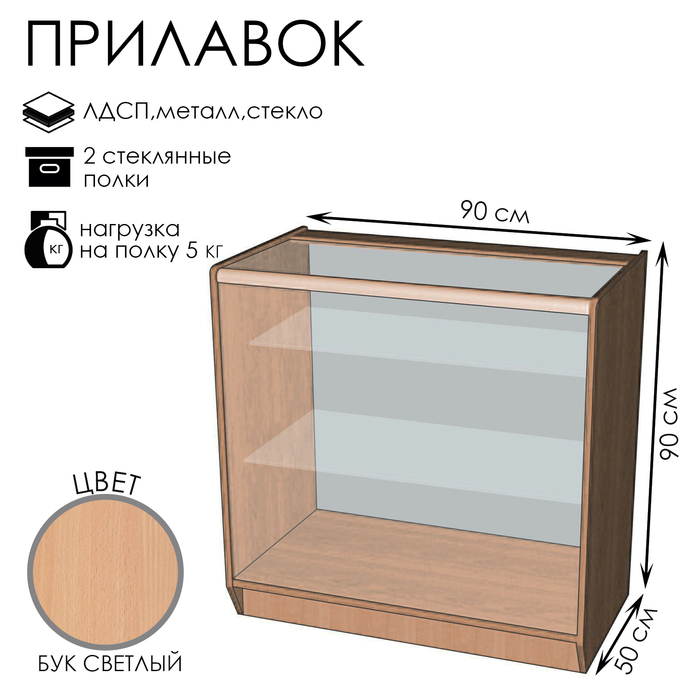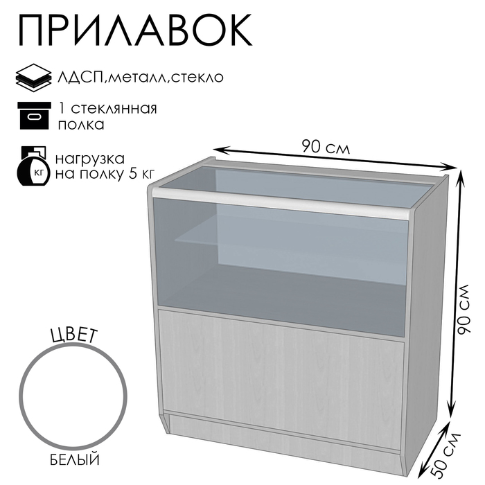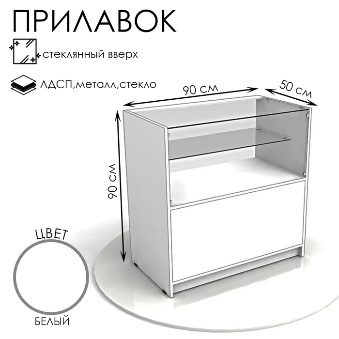 Прилавок из ЛДСП, демонстрационный, 90×44.5×90 см, стекло, белый