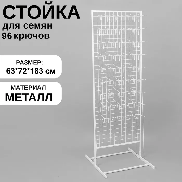 Стойка с сеткой, двухсторонняя, в комплекте 96 крючков для семян, 63×72×183 см, цвет белый