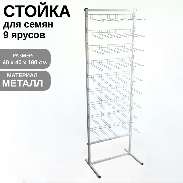 Стойка для семян 60×40×180, 9 ярусов с крючками L25 см, d4 мм, цвет белый
