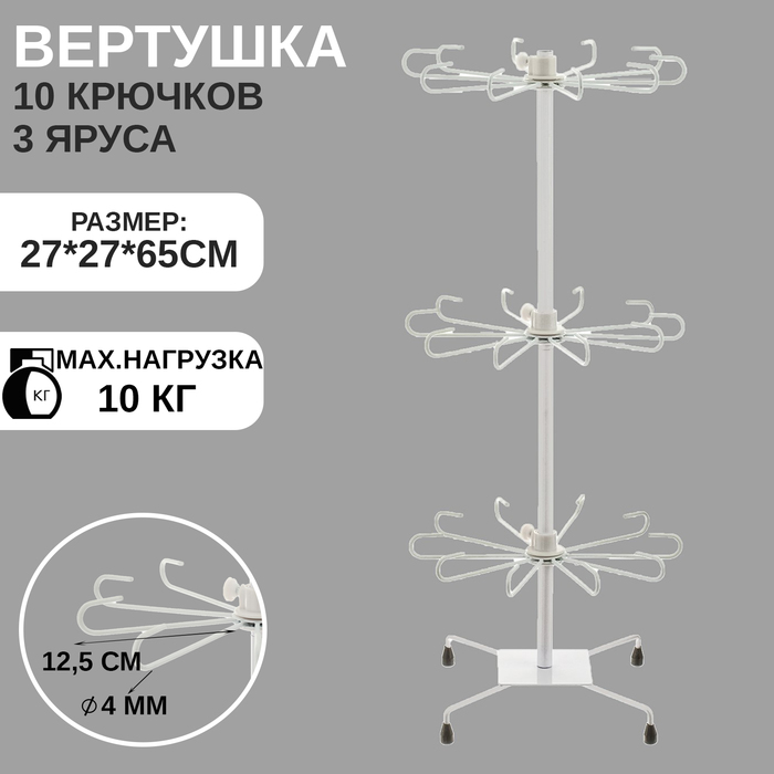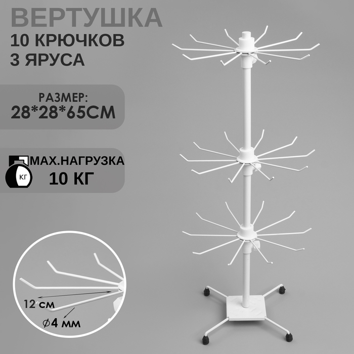 Вертушка, 3 яруса по 10 крючков, 27×65, цвет белый