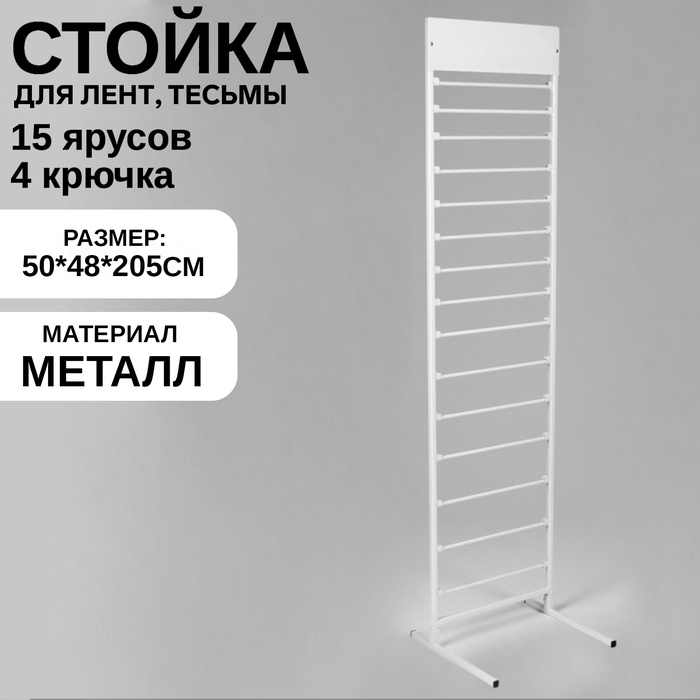 Стойка для лент, тесьмы напольная 50×205, 15 ярусов, цвет белый
