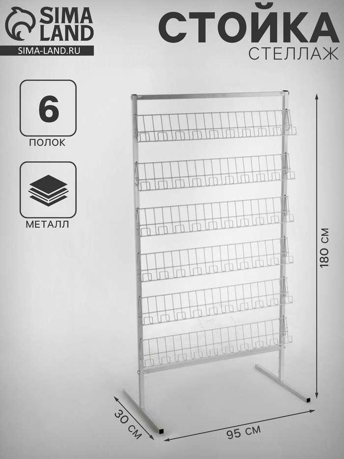 Стойка-стеллаж универсальная, 6 прямых полок, 95×30×180 см, белый