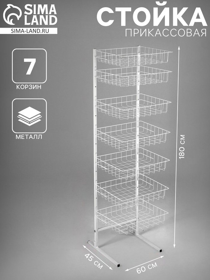 Стойка прикассовая 60×45×180, 7 корзин, белая