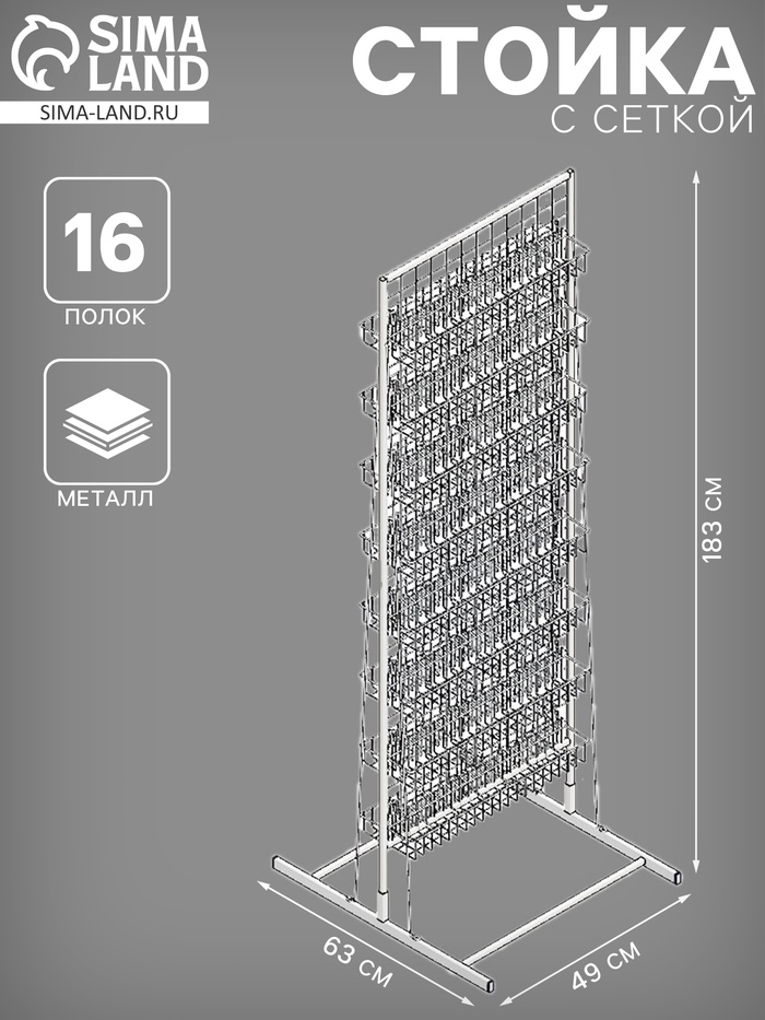 Стойка с сеткой, двухсторонняя, в комплекте 16 полок для семян, 63×49×183 см, цвет белый