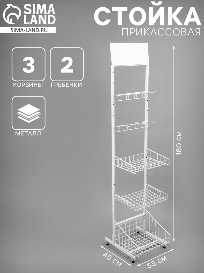 Стойка прикассовая 205×45×55, 3 корзины, 2 гребёнки, цвет белый