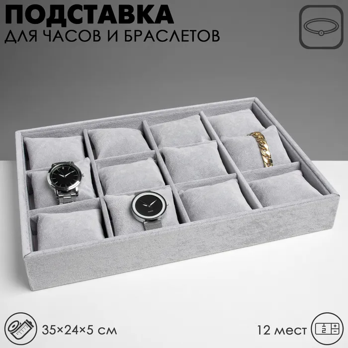 Подставка для часов, браслетов QF, 12 мест, 35×24×5 см, цвет серый