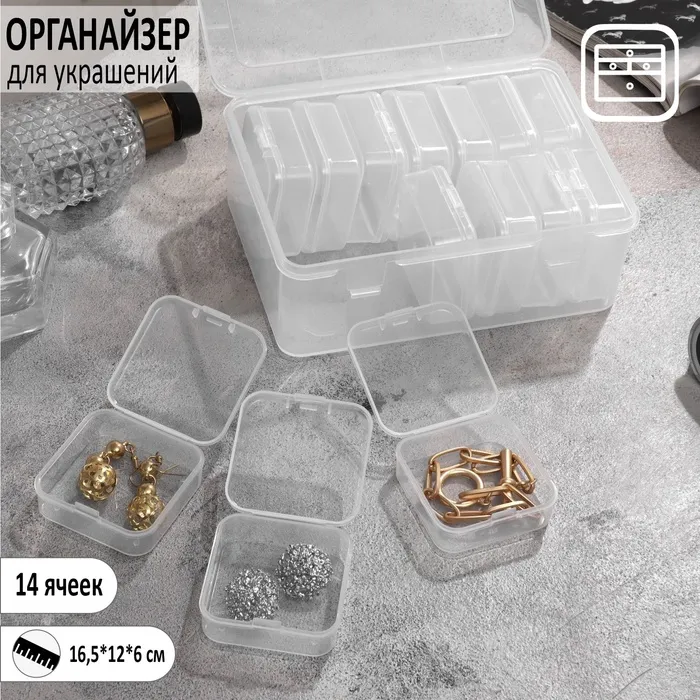 Органайзер для украшений антиокислительный на 14 ячеек, 16.5×12×6 см, прозрачный