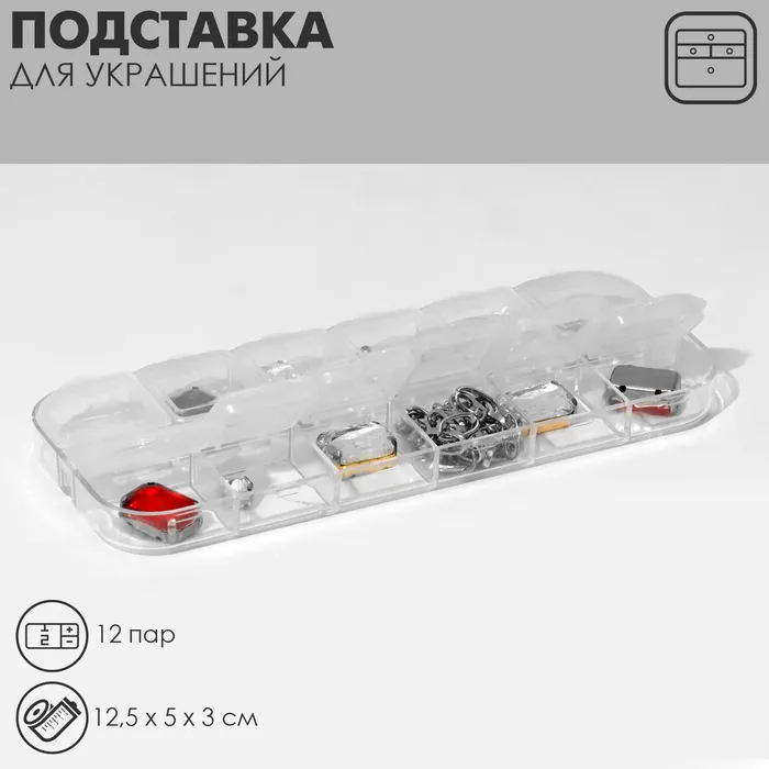 Подставка под украшения QF с футлярами 12 мест, 12.5×5×3 см, прозрачная
