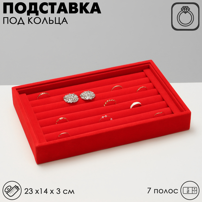 Подставка под кольца QF7 полос, 23×14×3 см, цвет красный