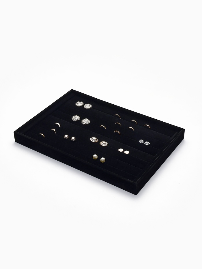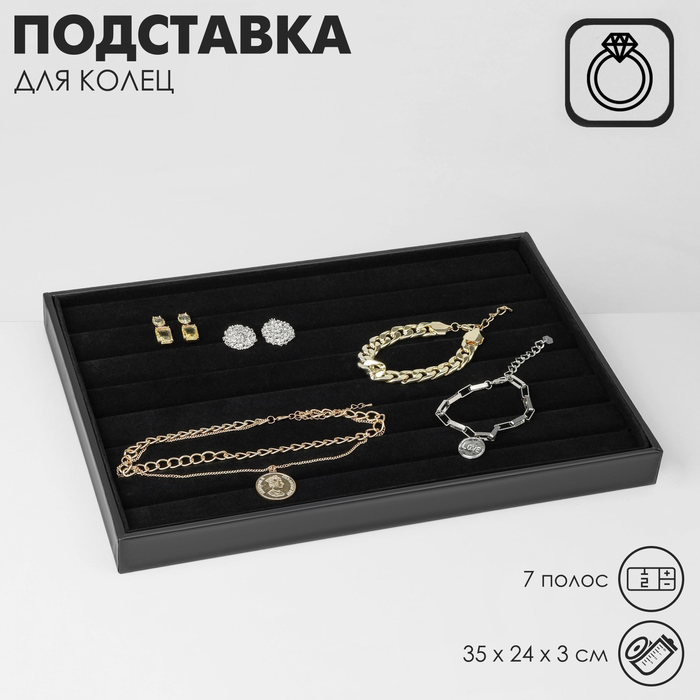 Подставка для колец 7 полос QF, флок, 35×24×3 см, цвет чёрный