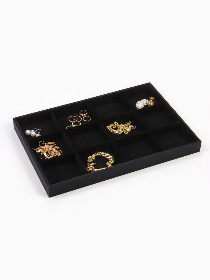 Подставка для украшений QF 12 ячеек, флок, 35×24×3, цвет чёрный