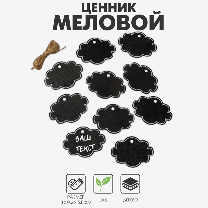 Меловой ценник «Подвесной» 8×5,8, облако, (фасовка 10 шт.), цвет чёрно-белый