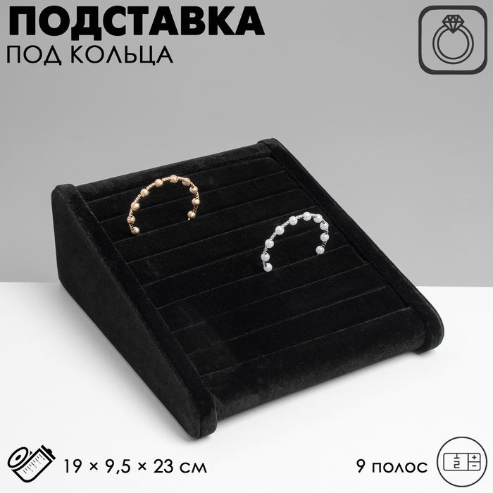 Подставка под кольца горка, 9 полос, 19×23×9.5 см, цвет чёрный