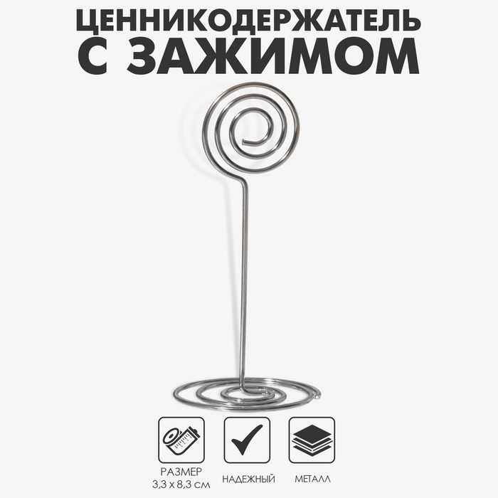 Подставка под ценник, фото «Круг», с зажимом, 3.3×3.3×8.3 см, цвет серебро