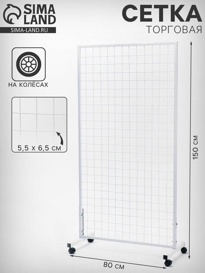 Сетка на колёсах, 80×150 см, размер ячейки 5.5×6.5 см, белая