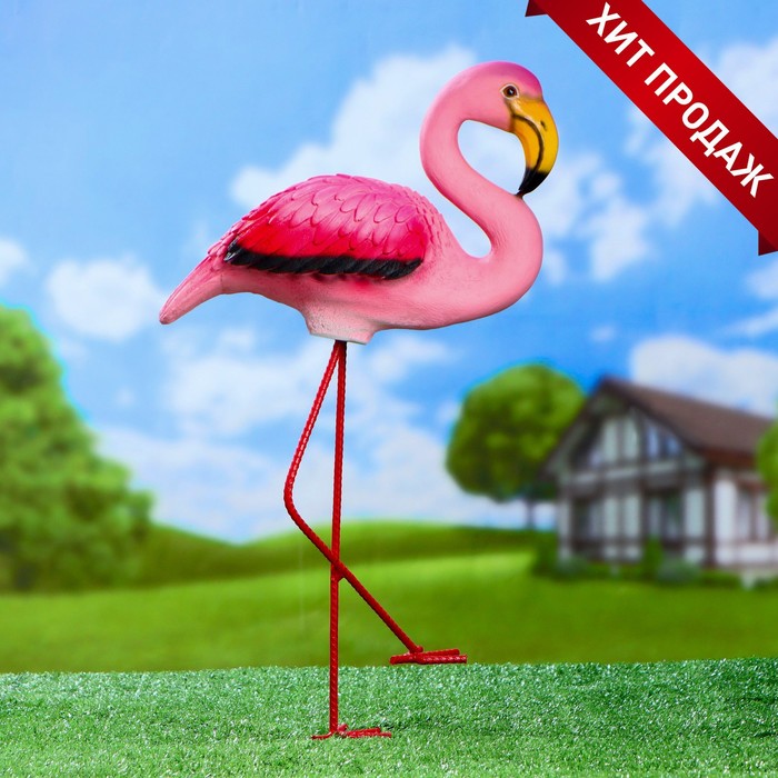 Садовая фигура из полистоуна «Розовый фламинго», 49×14×23 см