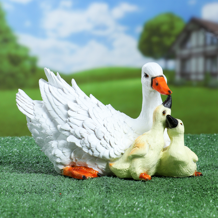 Садовая фигура из полистоуна «Утка с утятами», 27×17×17 см