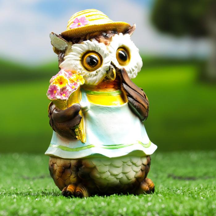 Садовая фигура из полистоуна «Филин в шляпке с букетом», 10×9.5×15 см