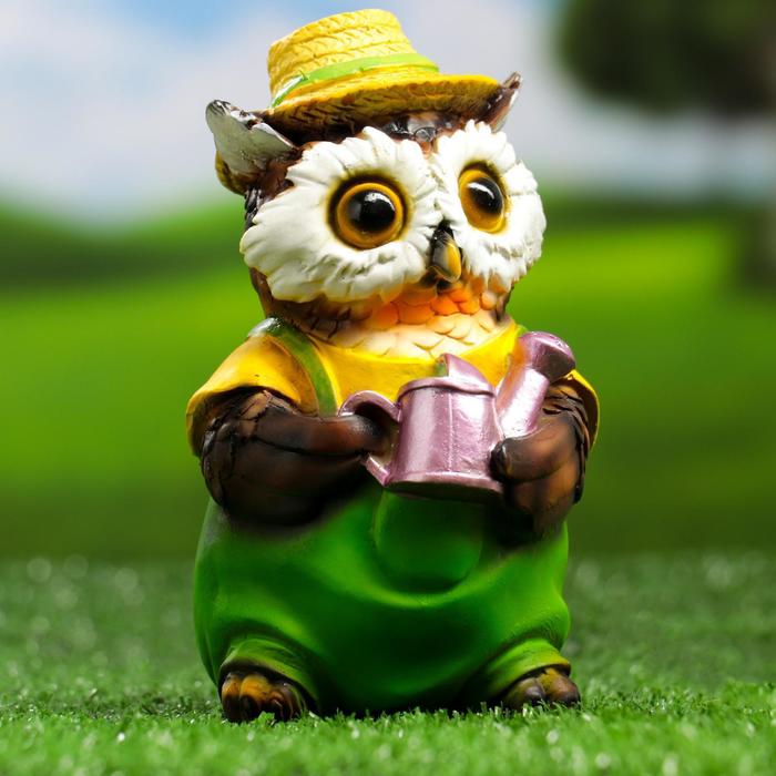Садовая фигура из полистоуна «Филин в шляпке с лейкой», 10×9.5×15 см