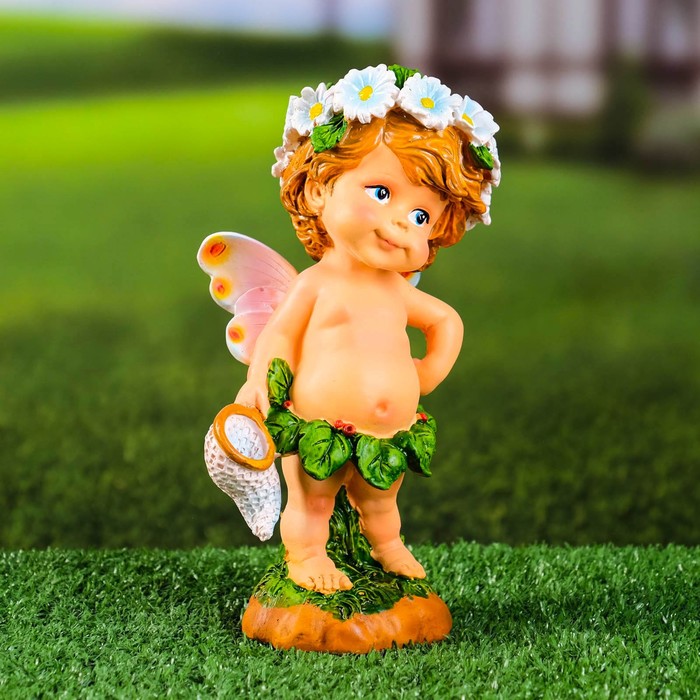 Садовая фигура из полистоуна «Цветочная фея с сачком», 7.5×12×20 см