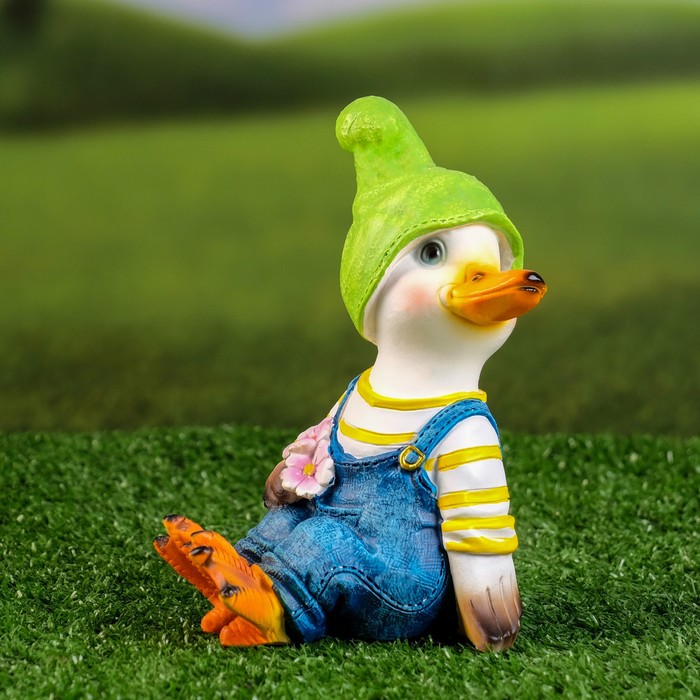 Садовая фигура из полистоуна «Утёнок с цветами», 10×5.5×16 см