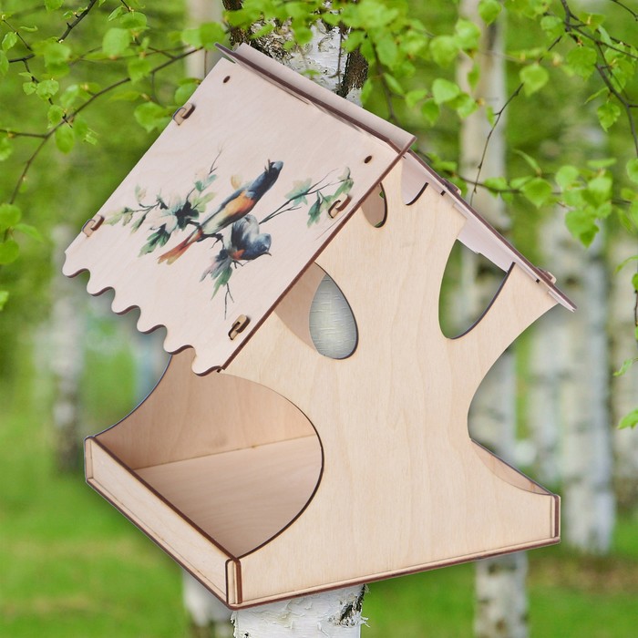 Кормушка для птиц «Птички на ветке», с принтом, 24×24×27 см