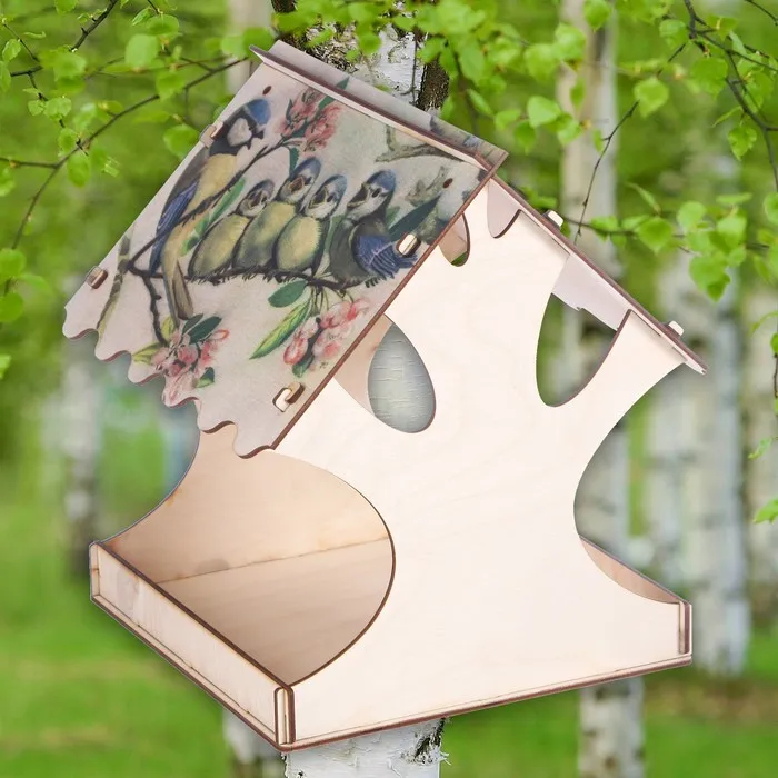 Кормушка - конструктор из ХДФ для птиц «Терция», своими руками, 16×18×23 см, Greengo