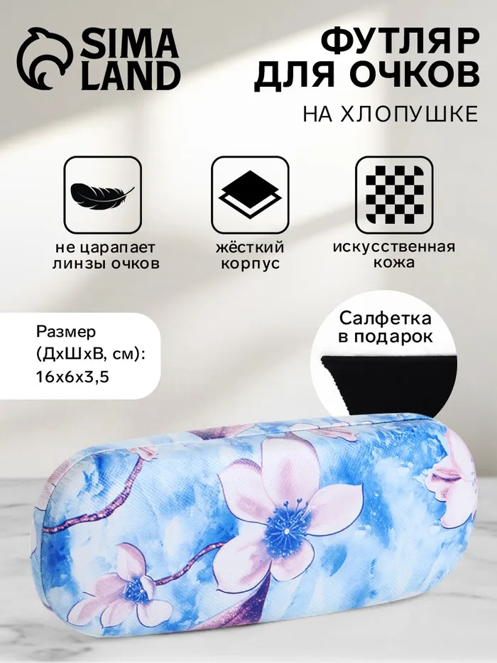 Футляр для очков на хлопушке, длина 16 см, с принтом, голубой