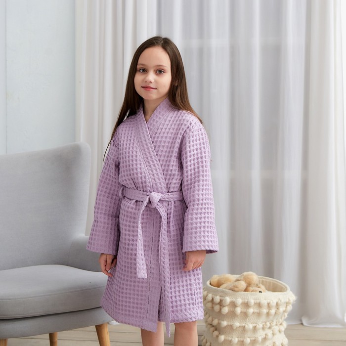 Халат вафельный детский Крошка Я "Boho" размер 34 (122-128 см) цвет сиреневый, 100% хлопок 290 г/м2