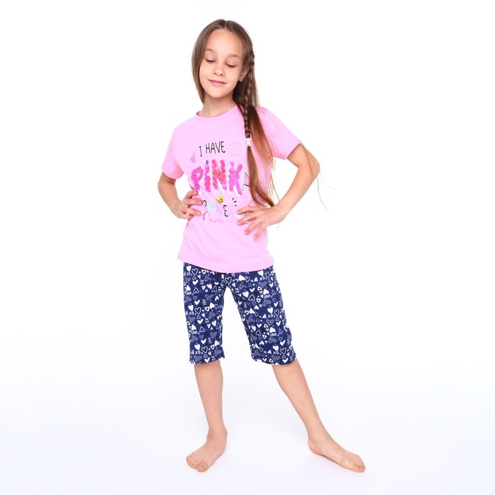 Пижама (футболка, бриджи) для девочки, цвет розовый/синий, рост 122 см