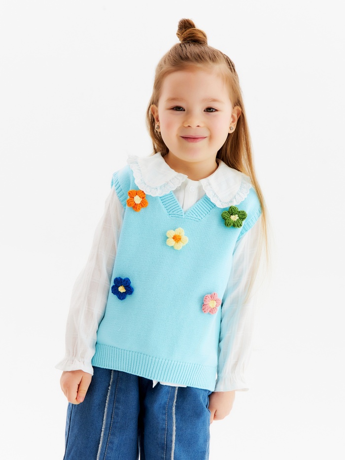 Жилет для девочки KAFTAN «Ромашки», размер 34 (122-128 см), голубой