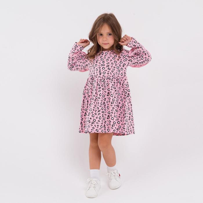 Платье для девочки, цвет розовый/леопард, рост 98 см