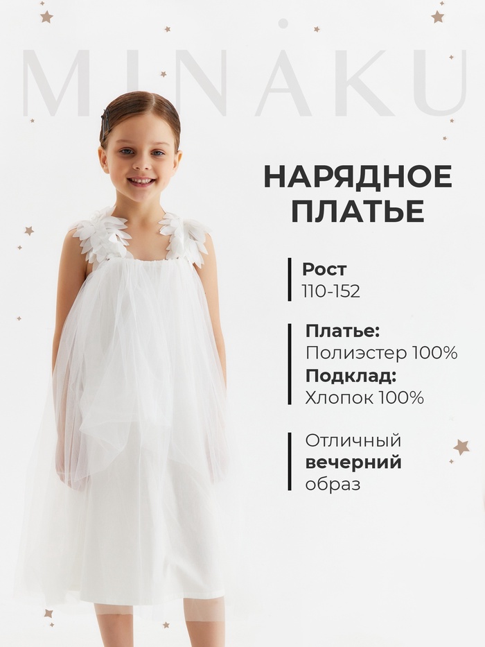Платье для девочки MINAKU: PartyDress, белое, рост 110 см