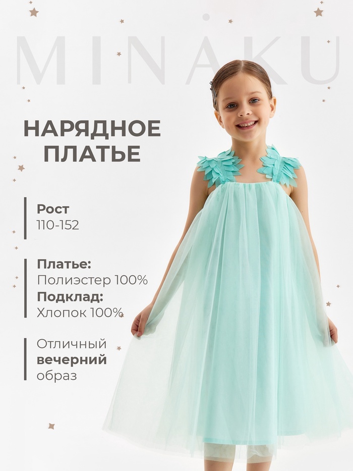 Платье для девочки MINAKU: PartyDress, мятное, рост 116 см