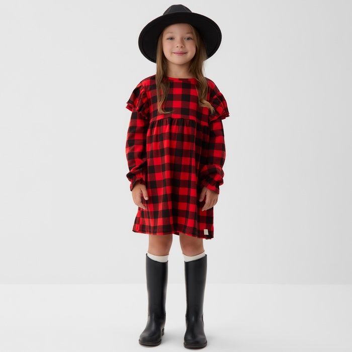 Платье детское с рюшами KAFTAN "Клеточка" размер 32 (110-116)
