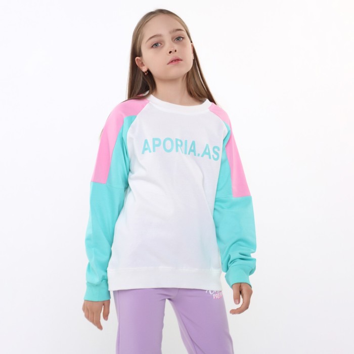 Свитшот для девочки, бело-бирюзовый, рост 134-140 см