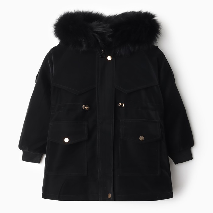Куртка зимняя для девочек, цвет чёрный, рост 122-128 см