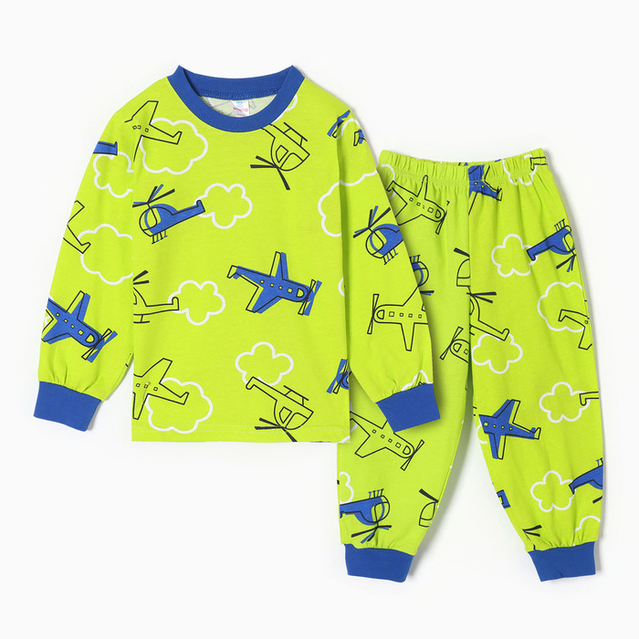 Пижама для мальчиков, цвет зелёный/самолетики, рост 104 см