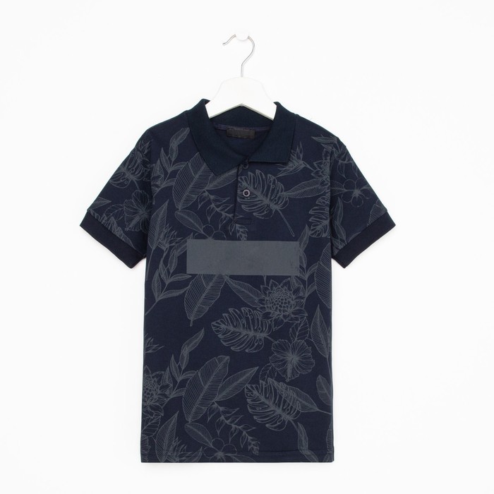 Футболка поло для мальчика, цвет тёмно-синий/принт микс, рост 140 см