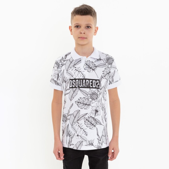 Футболка поло для мальчика, цвет белый/принт микс, рост 146 см