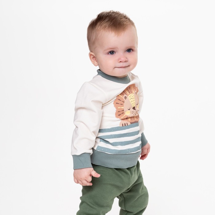 Свитшот детский, цвет молочный/зелёный, рост 98 см